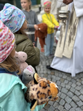 vielen plüschigen Tieren waren auch lebende Vierbeiner beim Franz von Assisi-Segen dabei.