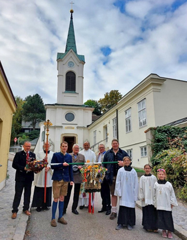 feierlichen Prozession zogen die Hauer mit ihrer Krone aus der Zeit Maria Theresias in die Kirche ein. Der Gottesdienst verband