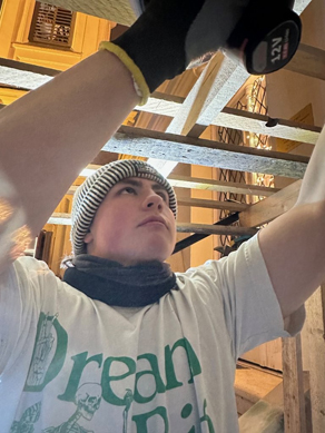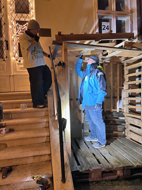 der Stall für das Krippenspiel gebaut. „Langsam wird es größer als meine Wohnung”, war Pater Rejis Kommentar zur Größe der diesjährigen