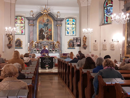 für die im letzten Jahr in der Pfarre Verstorbenen wurden nach der Predigt entzündet. Ein schwarzes Tuch als Zeichen der Trauer mit einem großen