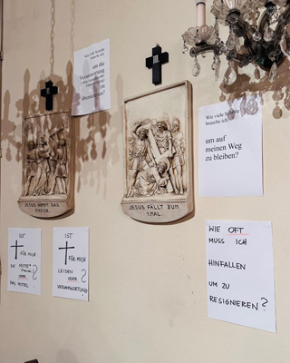 Gehört wurden Schritte, gelesen wurden Impulse, Fragen und Zitate, die sich mit den vielen Schritten in Richtung Erlösung auseinandersetzten.