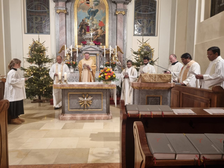 damit eine wertvolle geistliche Nahrung. Am Altar konzelebrierten außerdem vier weitere Priester: P. Manikumar OSFS, P. Robins aus dem Karmelitenkloster