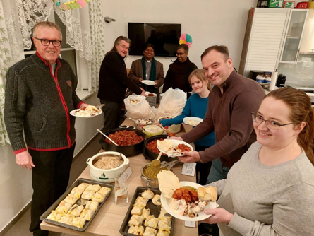 Im Anschluss an den Gottesdienst waren alle zu einer indischen Agape eingeladen. Zahlreiche köstliche Spezialitäten, liebevoll von Pater Reji zubereitet,