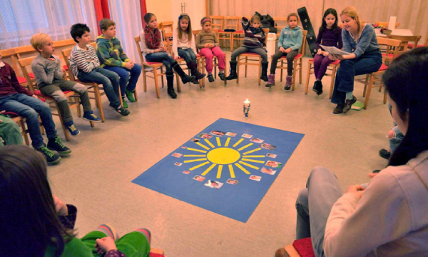 Am Weg zur Erstkommunion sehen die Kinder Jesus als Mittelpunkt ihrer Gemeinschaft