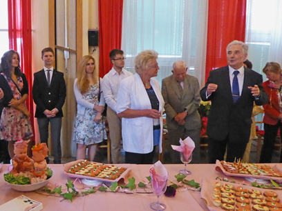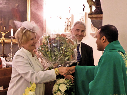 Wenn ein Familienfest zum Pfarrfest wird, so zeugt das auch von einer lebendigen Pfarrgemeinde. So geschehen am Sonntag, dem 7. September. Das Ehepaar Mag. Heinz und Renate Natschläger begingen ihren 50-sten Hochzeitstag und die Pfarrgemeinde feierte mit. Sohn Thomas, Oberministrant und ausgebildeter Wortgottesdienstleiter, fand in seiner Predigt sehr persönliche Worte. Anschließend an den von Sohn Christoph - an der Orgel - und Freunden musikalisch gestalteten Festgottesdienst ging es ins Pfarrheim zum kulinarischen Höhepunkt des Tages. Die Agape wurde in bewährter Manier dankenswerter Weise vom Team um Helene Venzl bereit gestellt. Fleißig wurde auf das Jubelpaar angestoßen.