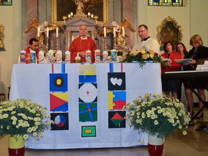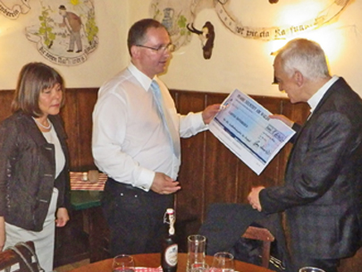 Eine überschaubare Schar von Jugendlichen empfing in einem vom Kirchenchor Leobendorf festlich gestalteten Pfingstgottesdienst am 24. Mai durch Caritaspräsident Michael Landau das Sakrament der Firmung. Beim Vater Unser bildeten die Firmkandidatinnen und Kandidaten, gleichsam dem Motto „Building Bridges” des gestrigen Songcontestes, Brücken zwischen den mitfeiernden Kirchenbesuchern. Anschließend ging es zur Agape in den Pfarrsaal, wo es sich Rudi Beer nicht nehmen ließ Caritaspräsident Landau zu seinem gestrigen Geburtstag zu gratulieren. Die Zelebranten, das Vorbereitungsteam und fleißige Helferinnen und Helfer wurden danach von Familie Wolff zum Mittagessen in deren Buschenschank eingeladen. Herzlichen Dank - es war köstlich! Dort überreichte Oberministrant Thomas Natschläger und die Leiterin der Firmvorbereitung, Silvia Stöckl, einen Scheck in der Höhe von 1640.-€ an den Caritaspräsidenten. Ein ansehnlicher Betrag zugunsten der Erdbebenopfer in Nepal, welcher von der Pfarrgemeinde aufgebracht wurde. Danke fürs Spenden sowie an alle, die die Firmfeier ermöglichten.