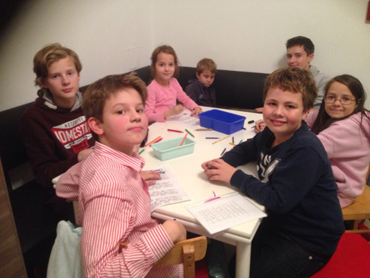 Momentan ist die Jungschargruppe fleißig am Vorbereiten der Familienmesse am 6.12.2015, die sie für die Pfarrgemeinde gestaltet. Was da gerade gemalt und gebastelt wird, ist noch ein Geheimnis!