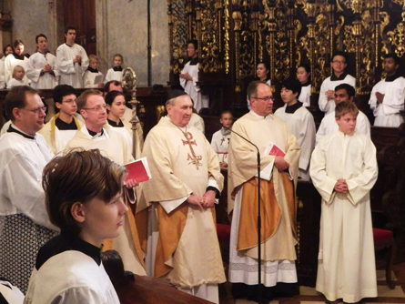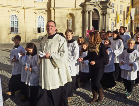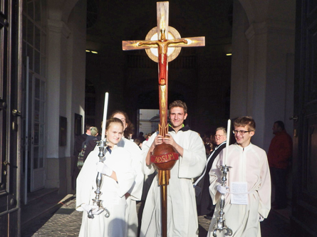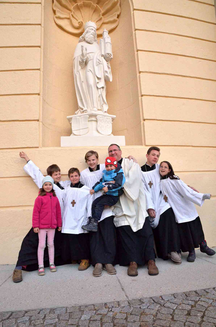 Samstag, der 14. November 2015, ein strahlend schöner Spätherbsttag. 700 Ministrantinnen und Ministranten strömten zur Wallfahrt in die Stiftskirche von Klosterneuburg. Darunter auch eine Abordnung aus Neustift: Julia, Moritz, Gabriel, Simon, Peter und Oberministrant Thomas Natschläger. Hinter dem Prozessionskreuz zog die Schar der jungen Messdienerinnen und Messdiener zum Festgottesdienst mit Propst Maximilian Fürnsinn aus dem Stift Herzogenburg in die Stiftsbasilika. Für das richtige Schätzen des Gewichtes des Prozessionskreuzes gab es Gratisjetons für den Leopoldiprater zu gewinnen. Die Neustifter gingen leider leer aus, gab Thomas Natschläger mit 5,5 kg leider die geringste Schätzung aller für das 9,4 kg schwere Vortragekreuz ab. In der Kirche durften unsere Minis ganz vorne im Chorgestühl Platz nehmen und waren damit hautnah am Geschehen. Fröhliche Stimmung herrschte beim abschließenden Fasslrutschen und beim Leopoldiprater.