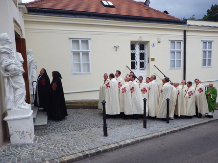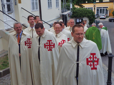 Die Komturei Wien des Ritterordens vom Heiligen Grabe zu Jerusalem feierte am 7. September eine hl. Messe in unserer Pfarrkirche. Zelebriert wurde diese von Prälat Rudolf Schütz. Der Ritterorden ist ein päpstlicher Laienorden und hat sich die Unterstützung von Christen im Heiligen Land zur Aufgabe gemacht. Als Zeichen dient das fünffache Jerusalemkreuz, welches die fünf Wundmale Christi symbolisiert. 120 Männer und Frauen – Ritter und Damen – gehören als gleichberechtigte Mitglieder dem Orden in Wien an. Österreichweit zählt er derzeit rund 400 Mitglieder.