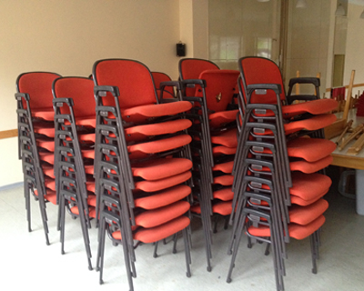 Am 7. Oktober 2015 konnten die vom Austria Center Vienna gespendeten Sessel abgeholt werden. Da dort eine neue Bestuhlung Einzug hält, wurden die bisherigen Stühle unentgeltlich an Interessenten abgeben. In diesem Zusammenhang sei ein herzliches Dankeschön an Dr. Brigitte Trinkl ausgesprochen, die den Kontakt herstellte. Ebenso möchte sich die Pfarre bei Hannes Trinkl für das Herborgen seines Autos bedanken und bei Thomas und Christoph Natschläger, die den ziemlich aufwändigen Transport der Sessel übernahmen und dazu auch einen Anhänger organisierten, galt es doch an die 100 Exemplare nach Neustift zu schaffen. Die neuen Stühle sind im Gegensatz zu den alten stapelbar, was eine enorme Platzersparnis beim Abstellen bedeutet.