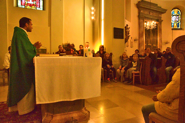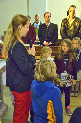 Am 8. November 2015 gestalteten unsere 12 Erstkommunionskinder die Familienmesse. Jedes Kind hatte bei dieser Messe zumindest eine Aufgabe übernommen: das Lesen von Texten, die Mithilfe bei der Gabenbereitung oder das Einsammeln der Spenden. Auch die Lesung aus dem ‚Buch der Könige’ wurde von Kindern in verteilten Rollen vorgetragen: das Gespräch zwischen dem Propheten Elija und der Witwe, die ihm von dem Wenigen, das sie noch hat, einen Bissen Brot gibt. Mit viel Freude sangen die Kinder die schwungvollen und ihnen wohlvertrauten Lieder.