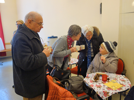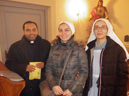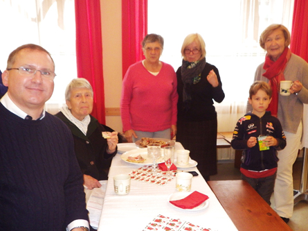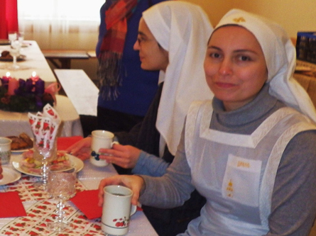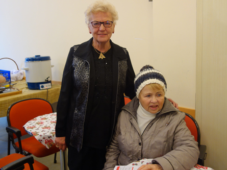 Am 8. Dezember waren zwei Schwestern des Klosters der Heiligen Elisabeth in Minsk (Weißrussland) zu Gast in unserer Pfarre. Der erst 1999 gegründete Orden hat es sich zur Aufgabe gemacht soziale Randgruppen insbesondere dort zu unterstützen, wo andere Hilfe versagt. Waisenkindern, psychisch Kranken, Behinderten, Drogenabhängigen und Haftentlassenen wird ihre aufopfernde Hilfe zuteil. Finanziert werden diese Tätigkeiten durch den Verkauf von in ihren eigenen Werkstätten angefertigten Handwerksarbeiten. Einige dieser boten sie auch bei uns in Neustift nach der Hl. Messe zum Verkauf an. Kurzerhand entschied Pfarrer Philip ihren Erlös mit der Kollekte des Tages aufzubessern. Anschließend traf man sich im Pfarrheim zum Plaudern und zu einer kleinen Stärkung. Diese hat dankenswerter Weise Frau Helene Venzl als kleines Dankeschön für alle pfarrlichen Helferinnen und Helfer bereit gestellt.
