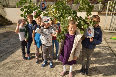 Für das „Vorstellungsplakat” haben die Kinder Steine aus Karton gebastelt und mit ihren Fotos versehen. Dank des sonnigen Wetters konnten wir diese sogar noch im Pfarrgarten „auf einem Gruppenbaum wachsen” lassen!