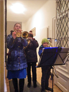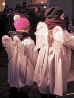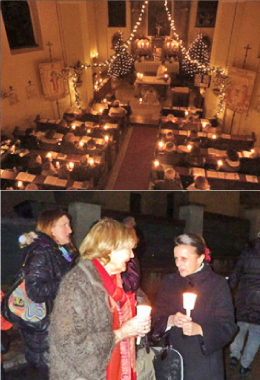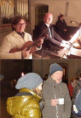 Nicht weniger stimmungsvoll und nahezu ebenso gut besucht die Christmette, umrahmt von Orgelmusik und Geigenklängen. Höhepunkt das wohl bekannteste Weihnachtslied –„Stille Nacht, Heilige Nacht” – bei Kerzenlicht. Anschließend der schon traditionelle Glühweinumtrunk vor der Kirche in der Eyblergasse.