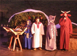 Ein hervorragend von Bettina Schilling inszeniertes Krippenspiel mit ausgezeichneten jungen Schauspielerinnen und Schauspielern und weihnachtliche Klänge eines Bläsertrios verkürzten den zahlreichen Kindern die Wartezeit auf das Christkind. Glücklich, wer bei der Kindermette in unserer völlig überfüllten Pfarrkirche einen Sitzplatz ergattern konnte.