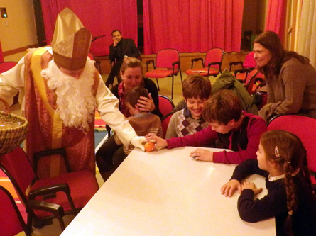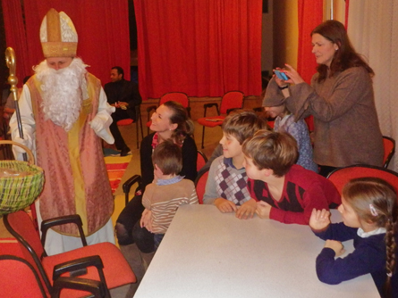 Die Anspannung bei den Kindern war deutlich zu spüren. Waren sie im vergangenen Jahr auch brav genug gewesen? Mit einem vorweihnachtlichen Lied begrüßten sie lautstark den Nikolaus im Pfarrsaal. Zur Freude der Kinderschar hatte dieser selbstverständlich für alle eine Kleinigkeit mitgebracht. Während sich die Kinder an Mandarinen und Schokolade erfreuten erwärmte Punsch die Herzen der Erwachsenen.