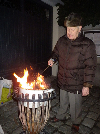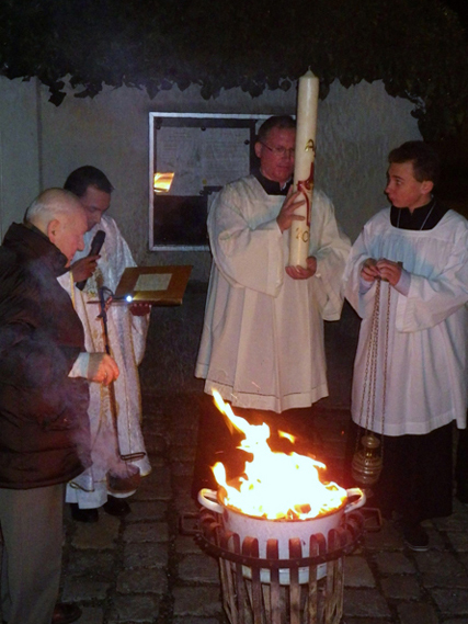 Seit Jahrzehnten entfacht Herr Ing. Franz Niedermayer das Osterfeuer zu Beginn der Auferstehungsfeier | Einzünden der Osterkerze beim Osterfeuer |