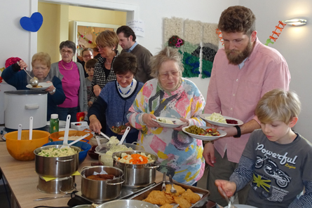 Es ist schon eine Weile her, dass unser Pfarrsaal bei einer Faschingsfeier so gut besucht war. Das neue Format kommt offenbar an. Gab es früher einen Pfarrball und ein Familienrundengschnas, so war es in der Folge im Fasching eher still geworden. Im vergangenen Jahr startete man schließlich mit dem Versuch der Wiederbelebung einer abendlichen Faschingsveranstaltung - mit bescheidenem Erfolg. Die überaus gut angekommene Pfarrgrillerei im vergangenen September bewog dazu, es nun mit einem Faschingsbrunch zu versuchen. Auch wenn die kleine Küche im Pfarrheim keine Haubenlokalspeisen zulässt, so gab es doch die ein oder andere Leckerei.