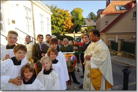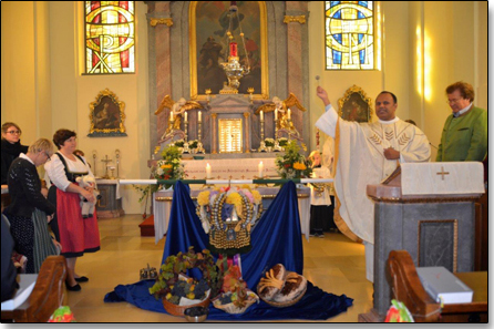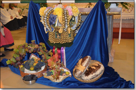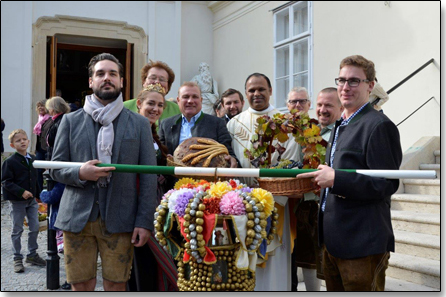gut gesehen werden. Es freute sich sehr, beim Erntedankfest das erste Mal die Hauerkrone und die Gaben zu sehen, welche die Neustifter Weinhauer zum Altar brachten.