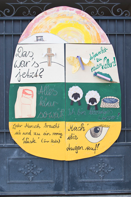 Jeden Fastensonntag kam - passend zum Evangelium - ein Bild und eine Textpassage dazu. Am Ende, dem Ostersonntag, wurde alles noch einmal im Licht der Auferstehung gesehen und von demselben gekrönt.