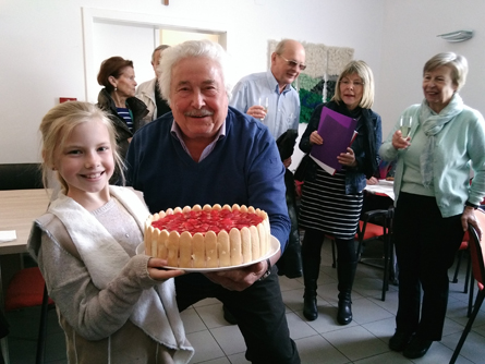 Wieder gab es beim Pfarrcafe etwas zu feiern, diesmal für Jung und nicht mehr ganz Jung. Die Geburtstage von Emily und Karl. Zur köstlichen Geburtstagstorte von Susi gab es diesmal natürlich auch Kindersekt.