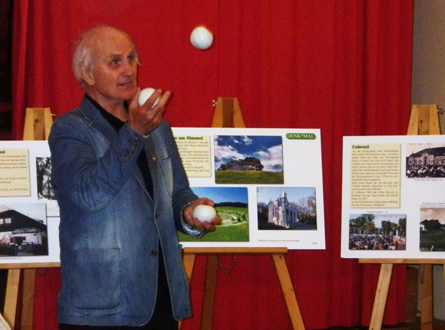 Informativ und unterhaltsam war der Vortrag von Univ. Prof. Dr. Roland Girtler im Rahmen des Bildungswerkes am 23. Juni 2017. Das Thema lautete „Streifzug zu den Gasthöfen und Hütten im Wienerwald”. Damit schloss der Vortrag thematisch an die gerade laufende Ausstellung des Vereins DENK*MAL im Pfarrsaal an. Was die Zuhörer jedoch geboten bekamen war viel mehr. Briefe an den Referenten von Kanzler Kern und Bundespräsident Van der Bellen wurden vorgelesen, Gedichte über das Klettern am Peilstein vorgetragen und zu guter letzt auch noch ein Jonglierkunststück vorgeführt. Gage verlangte Prof. Girtler keine, er meinte lediglich, dass man eher das Publikum bezahlen müsse, wenn es ihn schon aushalten müsse. Außerdem merkte er an: „Sie sind eh nicht wegen mir, sondern wegen dem Buffet da”. Bei diesem tauschte man sich anschließend aus, ehe sich Prof. Girtler auf sein Rad schwang und heimwärts radelte.