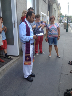 Am Sonntag, den 18. 6. 2017 wurde das neue Schutzgitter vor dem Eingang des Pfarrheims feierlich gesegnet.