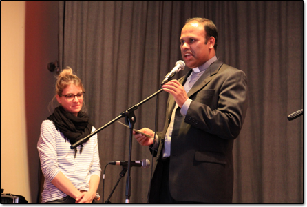 Begrüßung durch Pater RejiCosima zeigt den Kindern wo Zimbabwe liegtDas Duo Stango und NongomaGroß und Klein lauscht den afrikanischen KlängenNongomaStango