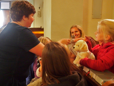 Segnung von Kuscheltieren am Festtag des Heiligen Franz von Assisi