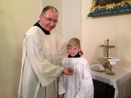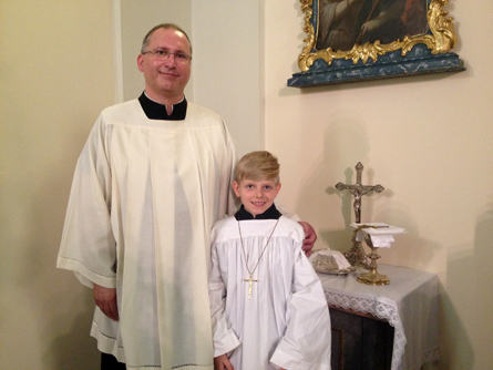 Felix feierte vor zwei Wochen zusammen mit seinen Schulkollegen die Erstkommunion. Bei den Vorbereitungsstunden hatte ich die Aufgabe übernommen, die Kinder durch die Kirche zu führen, wobei auch die Sakristei besichtigt wurde. Bei dieser Gelegenheit lud ich die Kinder ein, in unserem MinistrantInnen-Team mitzumachen, was Felix motivierte, zu uns zu kommen. Vorbildlich erledigte er während der Messe schon seine ersten Aufgaben. Vor dem Segen wurde er den Kirchenbesuchern vorgestellt und ihm viel Freude und Spaß in unserem Team gewünscht.