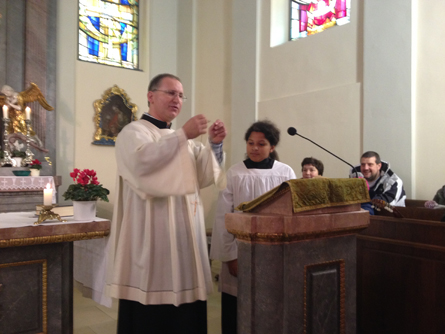 Mitteilungen” wurde unsere neue Ministrantin Penda-Flora, die bereits die Messe vorne am Altar mit uns feierte, der Pfarrgemeinde vorgestellt und ihr das Ministrantenkreuz, welche alle Ministranten
