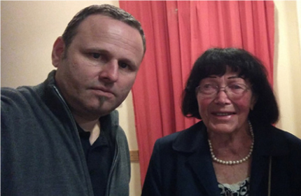 Referent Christian Dohlhofer mit Hilde Eder, die im ostrumänischen Iasi geboren wurde