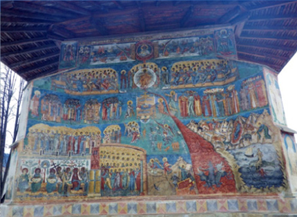 Bild vom Jüngsten Gericht auf der Westfassade der Klosterkirche von Voronet