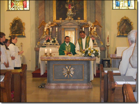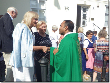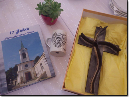 Um unsere Pfarrkirche in der Ferienzeit bis auf den letzten Platz zu füllen, bedarf es schon eines besonderen Ereignisses. Die letzte Sonntagsmesse, zelebriert von Pater Philip Sibichen als Pfarrer von Neustift am Walde am 27. August 2017, war jedenfalls ein solches. In seiner sehr persönlich gehaltenen Predigt dankte er den vielen ehrenamtlichen Mitarbeiterinnen und Mitarbeitern für das große Engagement, welches diese während seiner elfjährigen Tätigkeit stets aufs Neue zeigten. Auch ein wenig Wehmut war deutlich spürbar und bei den Danksagungen am Ende der Messfeier blieb kaum ein Auge trocken. Bei den Köstlichkeiten der Agape trockneten schließlich auch die größten Tränen und erste Besuchspläne wurden geschmiedet.