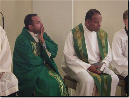 P. Philip und P. RejiPfarrer Philip vor der Messe mit seinem Nachchfolger Pater RejiInnehalten, bevor sich Pater Philip in der Predigt ein letztes Mal an seine Pfarrgemeinde wendetGeschenkpräsentation Dankesworte und GeschenkübergabePersönliche Verabschiedungen beim KirchentorErinnerungsgeschenke - Fotoband, Tasse mit den Namen der von