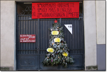 Knapp zwei Stunden danach ist unsere kleine Pfarrkirche abermals gut besucht. Pater Dominic feiert die englischsprachige Mette. Ein Chor auf der Orgelempore sorgt für festliche Gesänge. Danach geht es ins Pfarrheim zur Agape mit Glühwein, alkoholfreien Punsch, Wiener Schnitzel und Weihnachtskeksen.