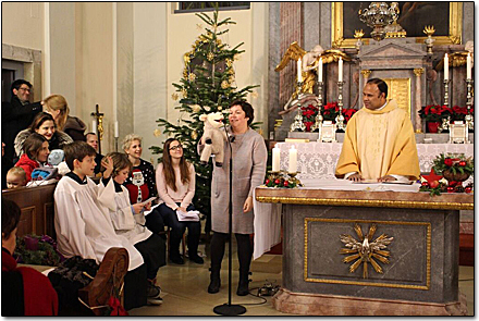 Drei Metten an einem Tag – das gab es bei uns in Neustift noch nie! Da darf es schon einmal passieren, dass man bei den Vorbereitungen plötzlich gleichzeitig drei Handys in die Hand gedrückt bekommt und nicht weiß, mit wem man gerade spricht, geschweige denn worüber. Und schon ist es wieder vorbei mit dem weihnachtlichen Frieden und die vorweihnachtliche Hektik hat einen eingeholt. Das pfarrliche Funkmikrophon befindet sich wegen der Renovierungsarbeiten in der Sakristei nicht an seinem angestammten Platz. Stefan stellt kurzfristig ein Mikro zur Verfügung, Annick wird zur „Rasenden Reporterin” und reicht dieses von Maria zu Josef und von Hirt zu Hirt weiter. Das Hirtenspiel ist gerettet! Wir bedanken uns bei der Firma Soundlux, die unser Krippenspiel mit Licht und Ton ausgestattet hat.