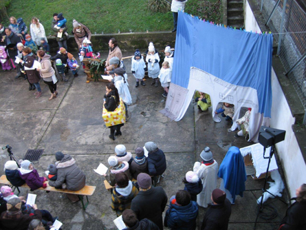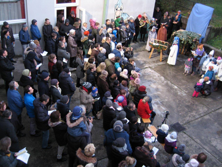 begeisternden Krippenspiel im Pfarrheimhof.