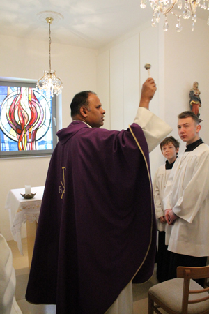Der Erste Fastensonntag war durch zahlreiche Aktivitäten in der Pfarre geprägt. Zuerst gab es ein PfarrFamiliy-Frühstück, danach Kinderkirche und während der Sonntagsmesse erfolgte als Höhepunkt unter großer Anteilnahme die Einweihung der renovierten Sakristei und der Wochentagskapelle. P. Reji erbat den Segen Gottes für diese Räume und vollzog begleitet von zahlreichen Ministranten und Kirchenbesuchern die Weihe. Den Abschluss bildete ein feierliches Te Deum und P. Reji bedankte sich bei Christoph und Thomas Natschläger für ihre zeitintensiven Bemühungen für die Renovierung.