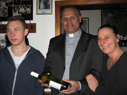 Mehrere Pfarrmitglieder luden Pater Reji anlässlich seines Geburtstages am 2. März ins Weingut Friseurmüller ein. Damit er auch in Zukunft fit bleiben möge, bekam er einen Gutschein für Laufschuhe überreicht. Zwei ausgezeichnete Torten – gebacken von Susi Gföhler und Helma Niedermayer - und eine Original Wiener Sachertorte durften natürlich nicht fehlen.