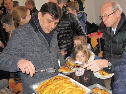 Seine Kochkünste stellte Pater Reji beim Pfarrkaffee erneut unter Beweis. Es gab Köstlichkeiten aus seiner Heimat Indien – überbackene Bananen und mit Ei gefüllte Teigtaschen. Kein Wunder, dass der Andrang in der Pfarrheimküche enorm war. Geschmeckt hat es jedenfalls allen.