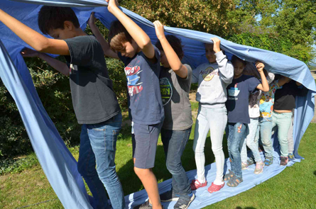 unterschiedlichen Stationen zum Thema des Wochenendes: Gott, der Baumeister.