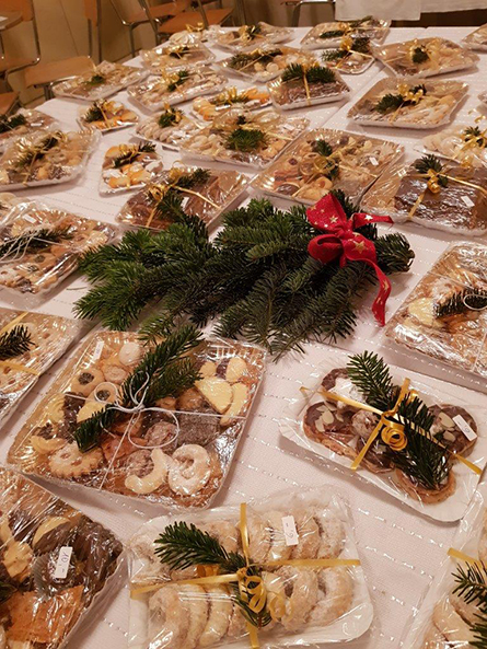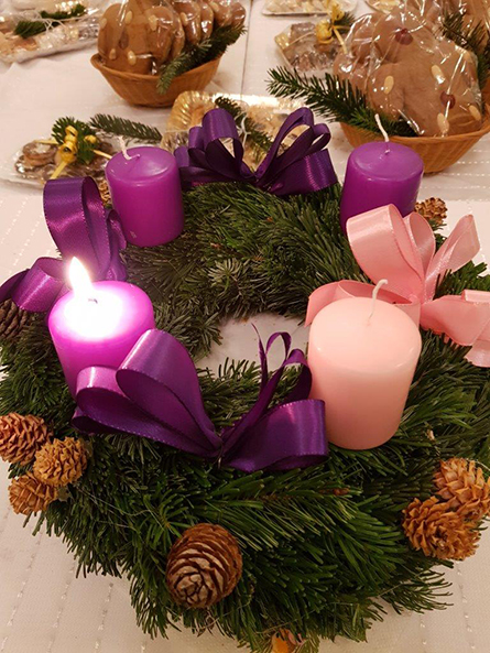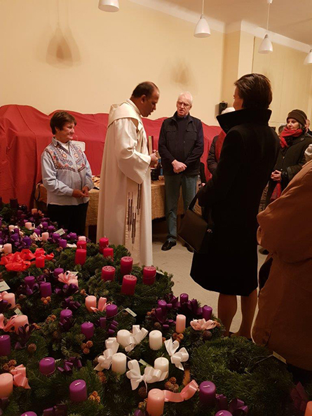 Fleißig wurden in den vergangenen Tagen Adventkränze gebunden und Weihnachtsbäckerei gebacken. Am ersten Adventsamstag nach der Vorabendmesse wurden die Kränze nun geweiht und der kleine Neustifter Weihnachtsmarkt eröffnet. Selbstverständlich durfte Punsch und das traditionelle Schurgebäck mit Lachs, Schinken und Speck nicht fehlen.