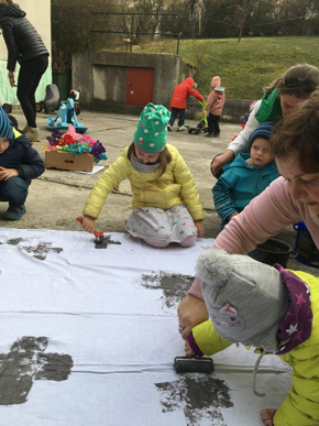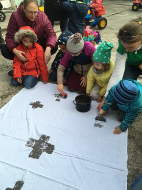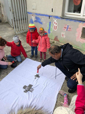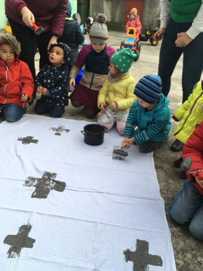Erwachsenen - erst wurde das Altartuch mit Aschenkreuzen verziert, dann