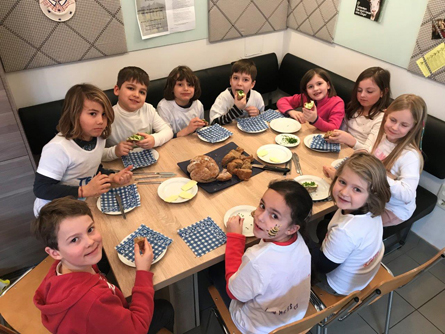 Die vierte Gruppenstunde stand ganz im Zeichen des Themas „Brot”: Die Kinder hörten die Erzählungen aus der Bibel von der Brotvermehrung und vom letzten Abendmahl. So lernten sie die Bedeutung von Brot im Leben Jesu kennen. Im Anschluss backten wir zwei köstliche Brotlaibe für unsere gemeinsame Brotjause.