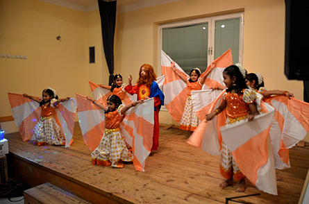 Gesang und mehreren Tänzen im Pfarrsaal. Fast eine Stunde lang brachten die indischen Kinder, Jugendlichen und Erwachsenen den Gästen mit ihren wunderbaren