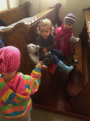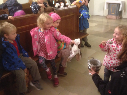 In diesem Jahr waren 17 Kinder bei der traditionellen Kuscheltiersegnung der Windelkracher und Krachmacher dabei. Sie durften in diesem Jahr sogar ihre Lieblinge selbst mit Weihwasser besprengen.