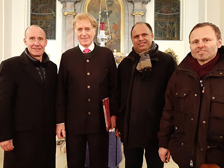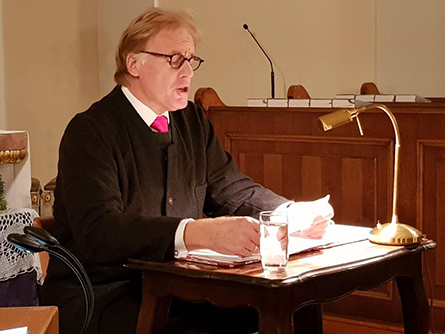 aller Strophen von „Stille Nacht” in gelesener Form mit Musikbegleitung.