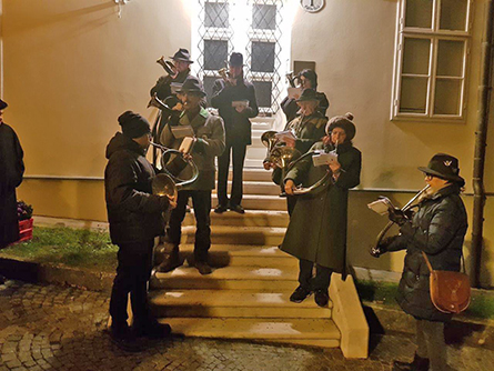 Nachher gab es in der Eyblergasse Glühwein und Leberkäse, die Jagdhornbläser