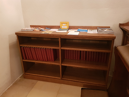Der schon in die Jahre gekommene und etwas improvisierte Schriftenstand wurde durch einen neuen ersetzt. Bei der Gestaltung wurde besonderer Wert auf das optische Erscheinungsbild gelegt, das an die Kirchenbänke angepasst ist und sich gut in den Kirchenraum einfügt. Zudem können die einzelnen Fächer wie bei einem Bücherregal verschiedenen Erfordernissen angepasst werden. Die Kosten wurden aus den Einnahmen des heurigen Flohmarktes bestritten und es sei dem Flohmarktteam ein herzliches Dankeschön ausgesprochen. Der neue Schriftenstand bietet ausreichend Platz, sowohl für eine adäquate Aufbewahrung der Liederbücher unserer englischsprachigen Pfarrmitglieder als auch für die Kindermessbücher und alle anderen Zeitschriften und Broschüren.